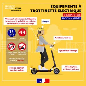 - De nuit, ou de jour par visibilité insuffisante, y compris en agglomération, l’arrêté du 24 juin 2020 précise que les utilisateurs doivent porter un vêtement ou équipement rétroréfléchissant (par exemple, un gilet, un brassard, etc.).